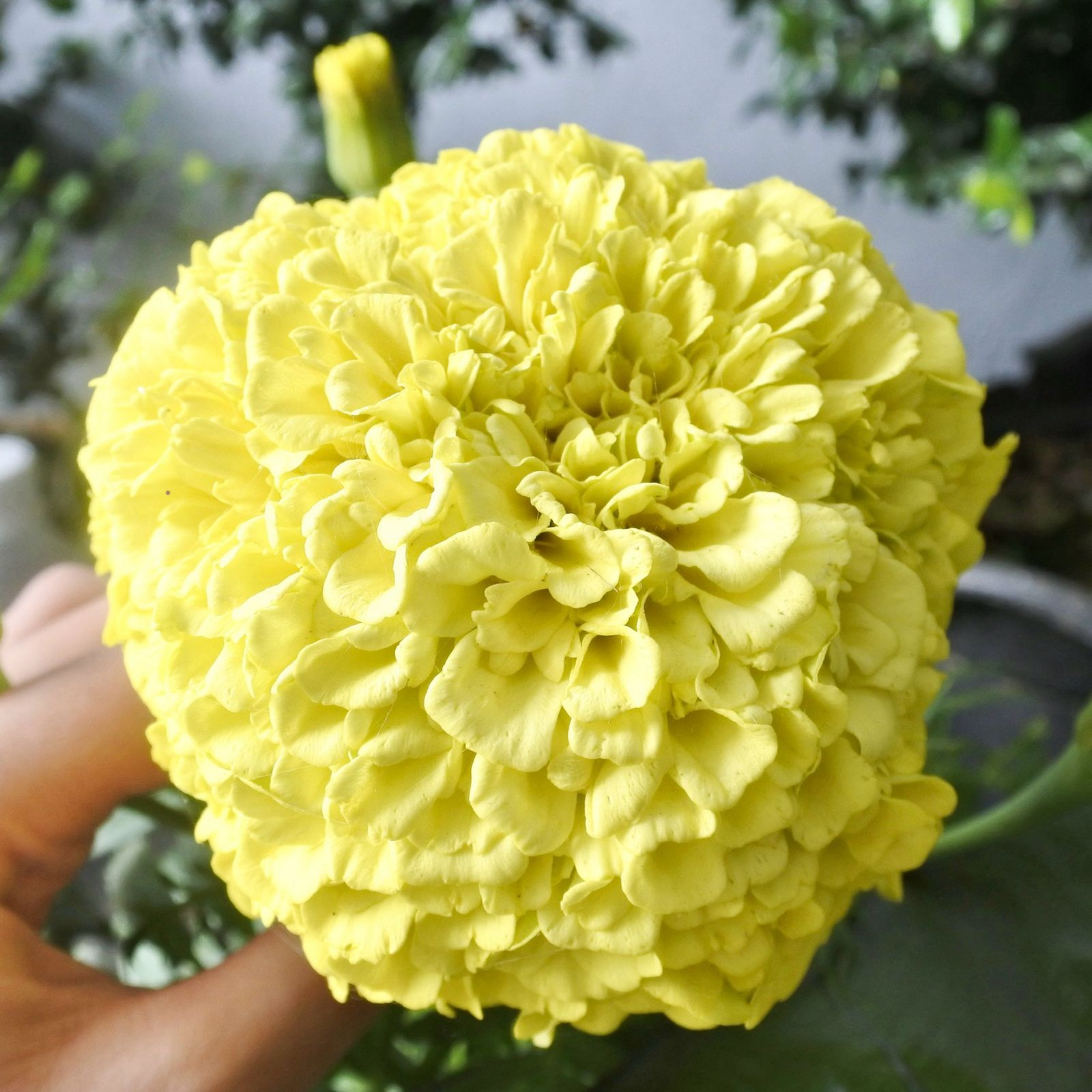 Bunga marigold berwarna kuning cerah, memberikan kesan segar dan ceria.